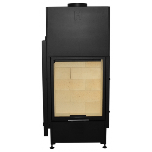 Высокий очаг топки закрывается подъемной дверью с прямым стеклом, вертикальное движение двери по направляющим осуществляет гильотинный механизм.