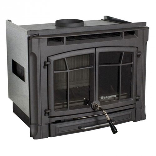 Топка-инсерт из чугуна. Предохранительный термостат защищает прибор от перегрева. Топка проста и понятна в управлении. В качестве топлива используются сухие дрова.