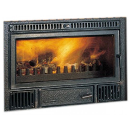 Высокоэффективная встраиваемая каминная топка C-3/70 из огнеупорного чугуна, с прямым фасадом и дверкой с керамическим стеклом. Имеется предохранительный термостат.