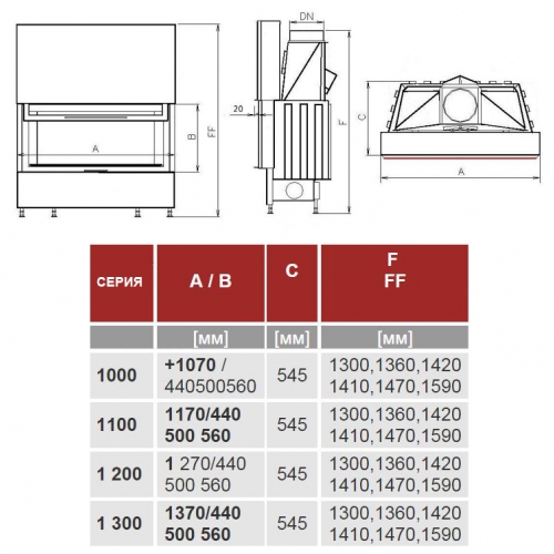 • Диаметр дымохода 250 мм