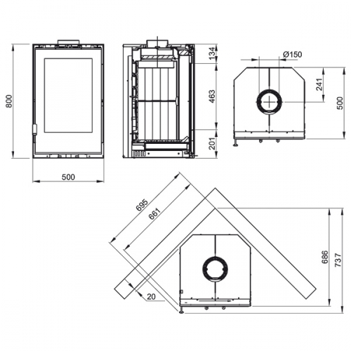 - ШхВхГ, мм.: 500x800x500
