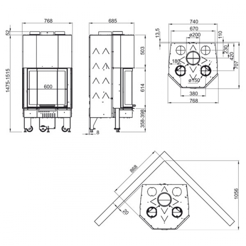 Каминная топка La Nordica Monoblocco 600 Prismatico