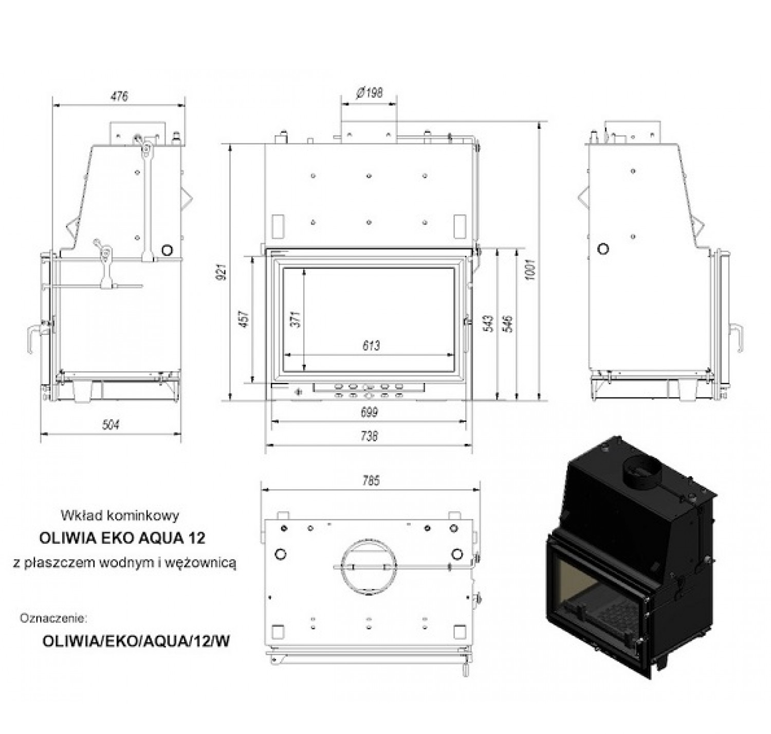 Oliwia EKO/AQUA/12/W (змеевик) - чугунные топочные камеры польского предприятия Kratki, производителя каминной продукции. Топочные камеры серии Oliwia EKO/AQUA получили сертификат «Лидер новых технологий® 2012», что является лучшим доказательством качества продукции компании Kratki. Данная модель имеет высокий КПД, унее снижен показатель выброса вредных веществ, асоотношение «цена-качество» является оптимальным. Преимущества топок серии Oliwia EKO/AQUA/12/W отKratki: Топка закрытого типа снепрерывным горением ивстроенным водяным теплообменником мощностью 12 кВт иобъемом 60 л; Футеровка камеры сгорания материалом Acumotte; Система дожига выхлопных газов— способствует уменьшению вредных выбросов ватмосферу; Медный змеевик— защита топки отперегрева инагревание воды набытовые нужды; Высокий дымосборник, присоединение дымоход сверху; Топливо— твердая древесина, коричневый уголь; Рама топки истанина изготовлены изтермоупорного чугуна; Топка с водяным теплообменником изготавливается изнелегированной листовой стали специальных сортов; в камере сгорания расположены дымоградные трубы увеличивающие поверхность теплообмена втопке; Термостойкое стекло Robax (порог температурной устойчивости 800 С); Система чистого стекла предотвращает быстрое загрязнение; Встроенный шибер, дефлектор извермикулита; Система холодной ручки; Управлением потоками первичного ивторичного воздуха для горения; Решетка надне камеры сгорания, ящик для сбора пепла; Накорпусе топки предусмотрены специальные ручки, предназначенные для удобства транспортировки; Держатель для дров, предотвращает рассыпание дров при открытии топки.