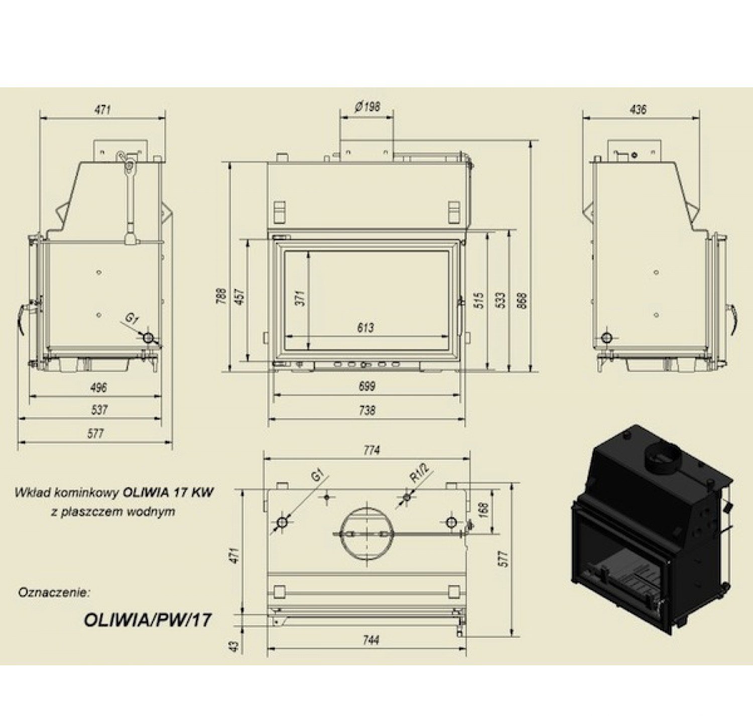 Каминная топка Oliwia/PW/17/GLASS с водяным контуром