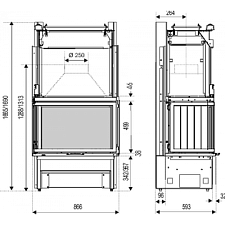 - Выход дымохода: Верхний