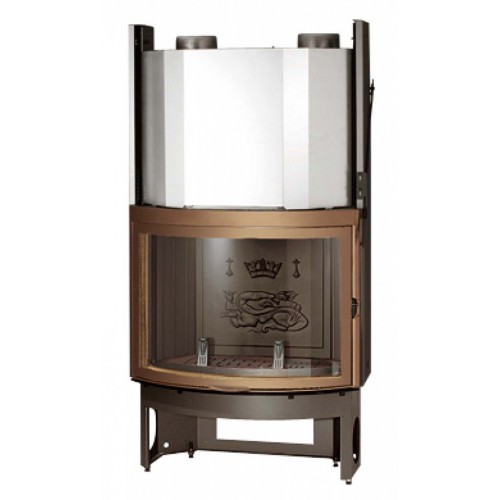 Фронтальная топка для каминной облицовки. Стенки и низ очага выполнены из толстого чугуна. Дверца с керамическим выпуклым стеклом. Система очистки стекла. Колосниковая решетка из чугуна. Регулируемые ножки.