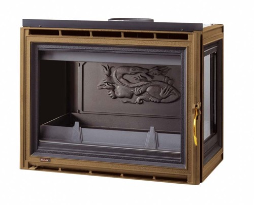 Чугунная кассета с прямым обзорным стеклом. Дверца топки с бронзовой рамкой. В качестве горючего используются сухие дрова. Система очистки стекла.