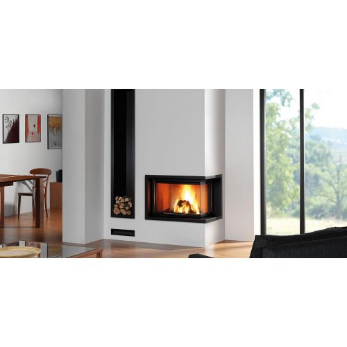 Топка с угловым стеклом. За счет правостороннего остекления увеличивается обзор огня. Стальной корпус, реверсивная огнепрочная футеровка. Удобная загрузка дров, простой уход и экономичный расход топлива. На двери установлено жаропрочное стекло, выдерживающее высокую температуру. Благодаря системе самоочистки стекла, топочное окно остается чистым и прозрачным во время работы прибора.