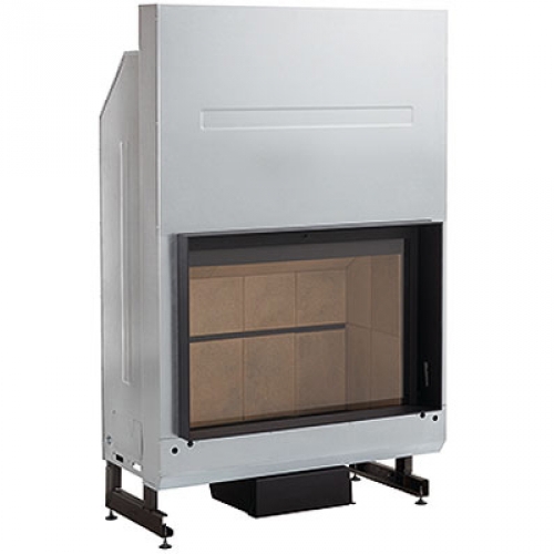 Каминная топка, работающая на дровах, с прямым стеклянным фасадом. Топочная дверь оборудована подъемным механизмом. Стальной корпус, огнепрочная футеровка, обеспечивающая высокий уровень аккумуляции и теплоотдачи. Благодаря обдуву дверцы по всему периметру, стекло топки остается чистым долгое время.