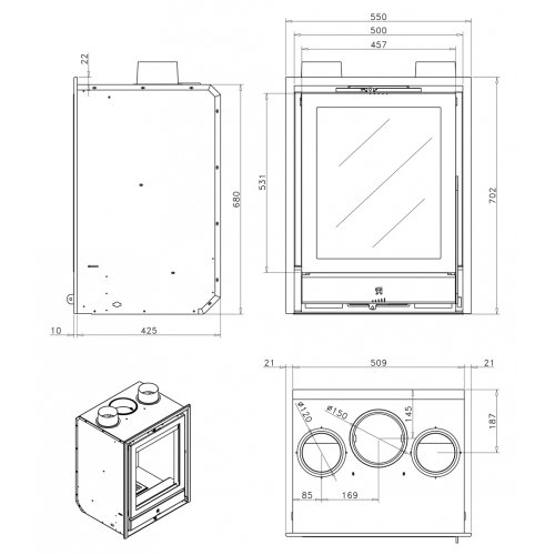- Диаметр дымохода: 15 см