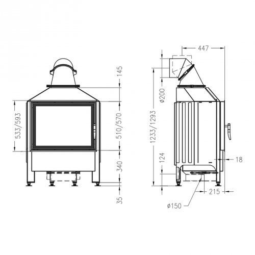 - Опциональная комплектация дополнительной задней дверцей для закладки дров из подсобного помещения.
