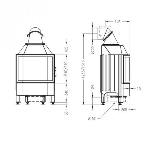 - Опциональная комплектация дополнительной задней дверцей для закладки дров из подсобного помещения.