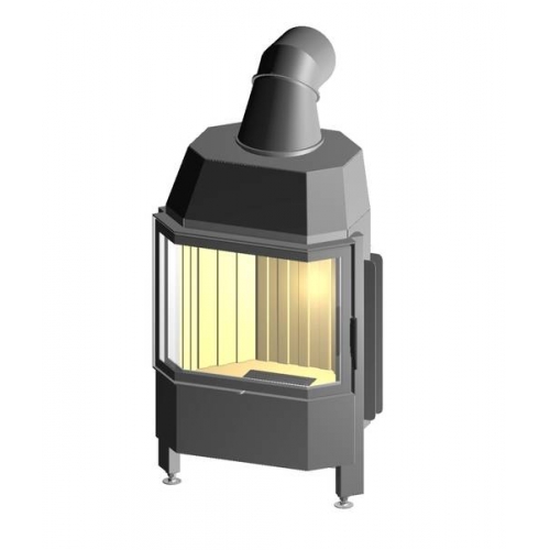 Каминная топка Spartherm Speedy K из стали толщиной 4/5 мм с антикоррозийным покрытием. Дверца с призматическим керамическим стеклом, которая открывается вбок. Шамотный кирпич внутри топки увеличивает температуру в топке, накапливает это тепло во время работы топки, и длительное время излучает его после окончания процесса горения.