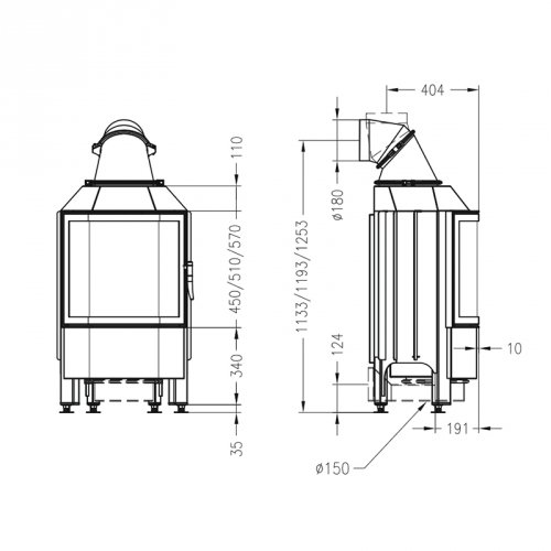 • Опциональная комплектация дополнительной задней дверцей для закладки дров из подсобного помещения.