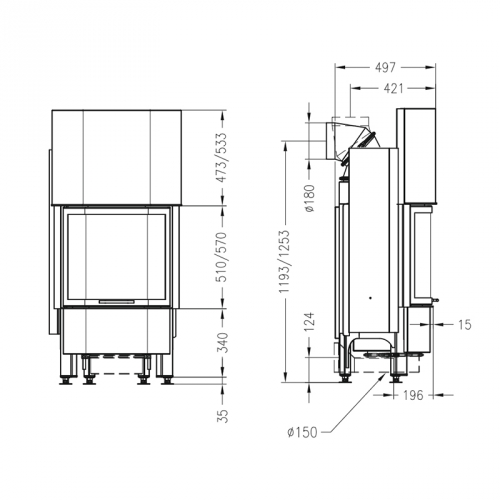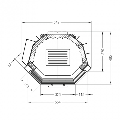 • Опциональная комплектация дополнительной задней дверцей для закладки дров из подсобного помещения.