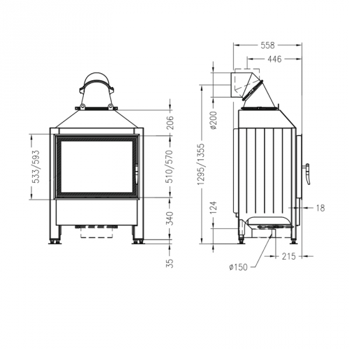- Опциональная комплектация дополнительной задней дверцей для закладки дров из подсобного помещения.
