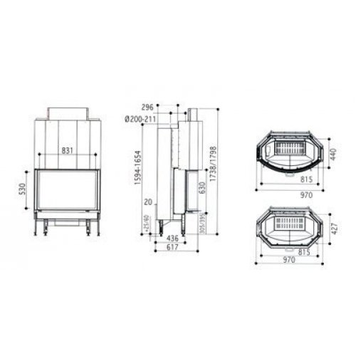 • Внутренняя отделка: чугун (501) или шамотный кирпич (531)