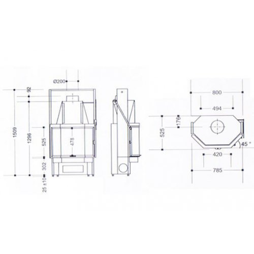 Большое призматическое стекло. Очень высокое стекло топки позволяет полнее видеть картину огня. Призматическое стекло акцентирует внимание на пламени.