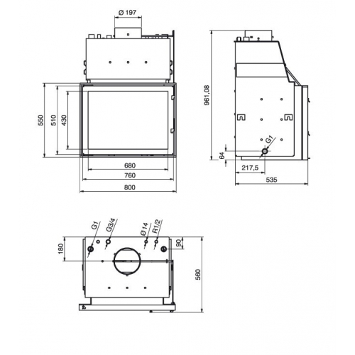 - Дизайн: Большие поверхности с традиционной или NERO системой (внешнее декоративное стекло, которое придает камину современный вид).