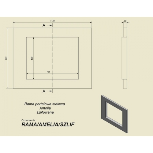 Портал выполнен из сатинированной стали известным польским производителем - компанией КРАТКИ. Дизайн  портала относится к современному стилю модерн. Корпус изготовлен в виде широкой рамы и предназначен для топочных камер Amelia, Felix. Топки работают на дровах и имеют боковое открытие. Керамическое топочное окно с прямым стеклом выдерживает высокотемпературный нагрев (до 800 градусов Цельсия). Встроенная технология "чистое стекло".
