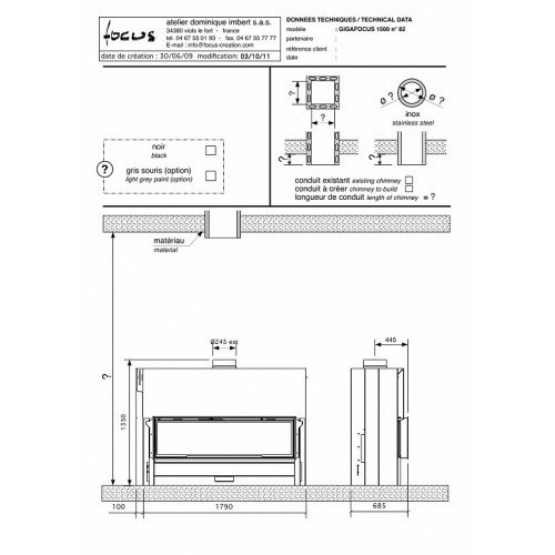 Существует на выбор три ширины портала: (1,50 м, 1,70 м или 1,90 м), который являет собой сочетание эргономичности, простоты и безопасности механизма открытия. Дверь также наклоняется на 45 ° для безопасности очистки. Внутри топка выложена изоляционным материалом из черной стали. Герметичная система прямого притока свежего воздуха (O 160 мм). Верхние и нижние вентиляторы обязательны. Гарантирована эффективность при минимальной длине трубы (внутренней и внешней) в 5 м.