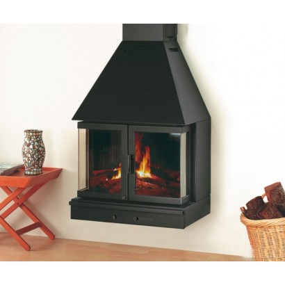 Фронтальный (пристенный) металлический камин. Дрова: 35 см.