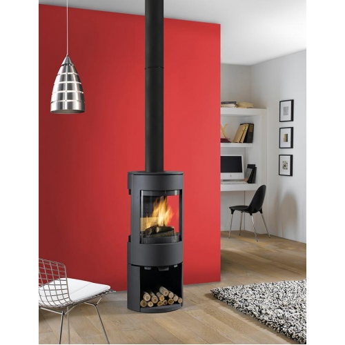 Отдельностоящая дровяная печь из высококачественного чугуна в современном дизайне. Внизу имеется вместительная дровница. Печь оборудована системой двойного дожига. Подключение воздуха снаружи. Цвет - антрацит.