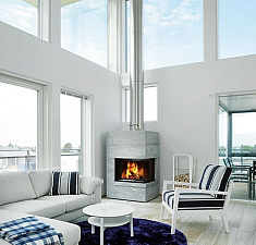 В интерьерном камине DEKO воздух циркулирует внутри камина. Такие камины быстро и интенсивно передают вырабатываемое при сгорании дров тепло в помещение. После затухания пламени поступление тепла прекращается. Камин DEKO облицован натуральным горшечным камнем Mammutti, который равномерно распределяет приятное тепло. При необходимости камин можно дополнительно оснастить аккумулирующим элементом, который увеличивает теплоотдачу камина.