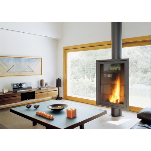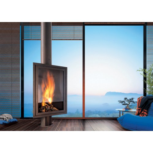 - Свободно стоящий камин прерывистого горения, с открытой топкой