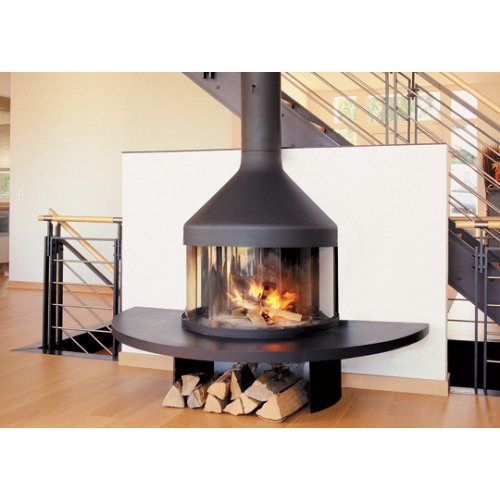Чтобы оптимизировать производительные возможности, этот пристенный очаг из  стали снабжен теплообменником. Камин имеет чёрную полку-банкетку, 2 ширины на выбор : 1,25 или 1,75 м. Материал полки может сочетаться с полом и другими поверхностями: плитка,  мрамор , гранит.