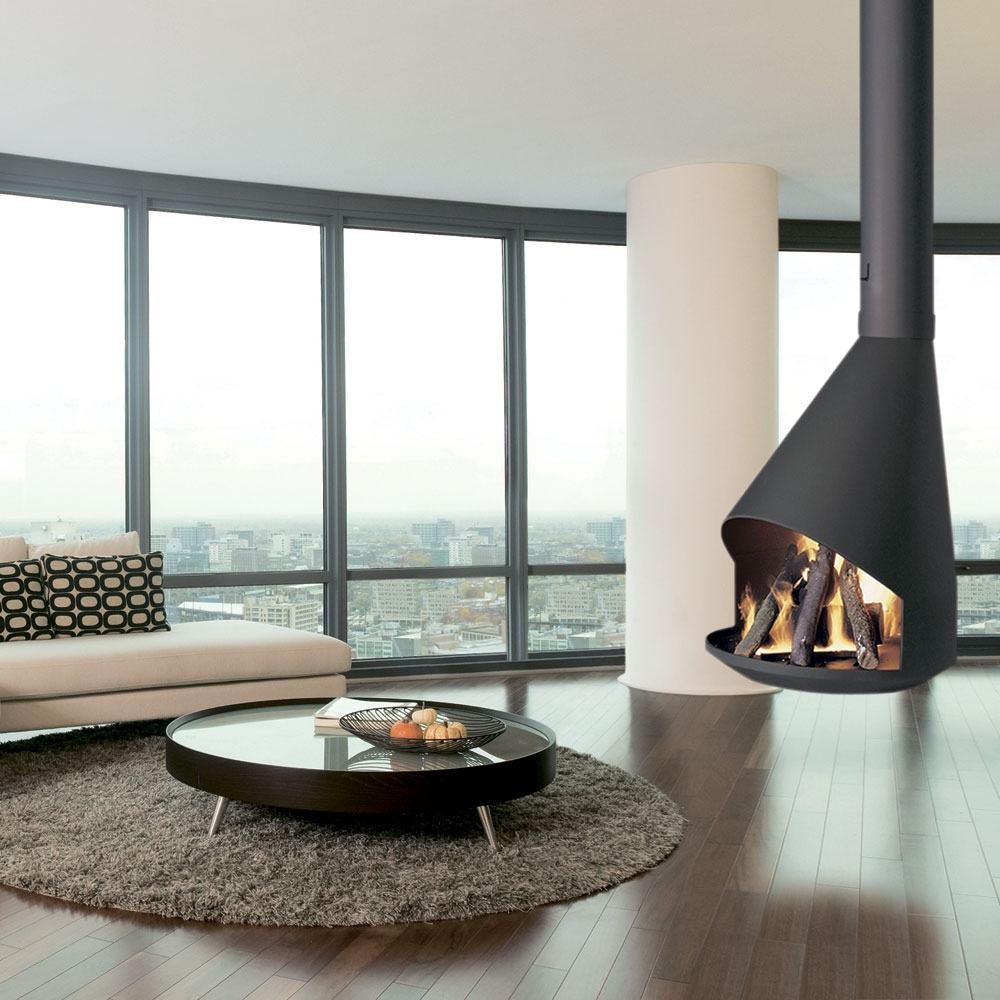 Центральный подвесной открытый камин. Возможна установка системы вращения (опция).