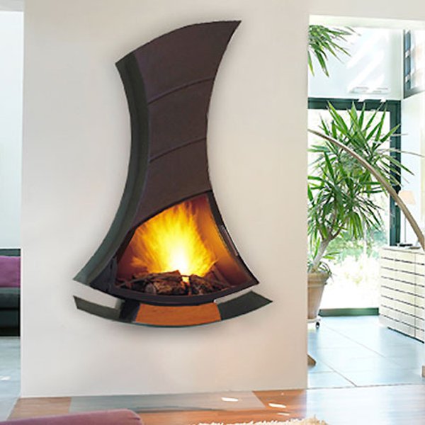 Камин пристенный, подвесной, заднее подключение дымохода, дверца зольника деревянная.