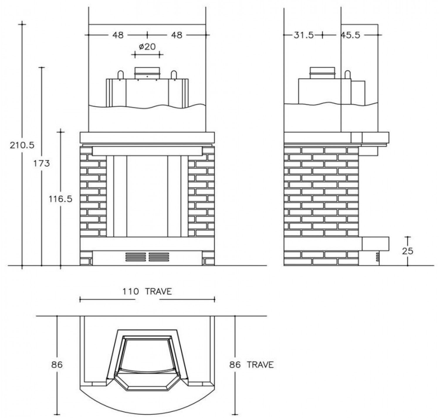 Топка в камине Francia сделана также в полукруглом, овальном формате, тем самым представляя утонченный силуэт и плавность стеклянных линий. Топка оформлена стеклянной жаропрочной дверкой, которая оказывает благоприятное воздействие на полноценные обогревательные способности камина. В закрытом варианте топки дрова горят медленно и тепло из топки постепенно охватывает пространство дома, тем самым увеличивая время, в которое ваш дом останется протопленным. Камин – это по сути, печь в упрощенном формате. Теплый воздух из камина сразу же поднимается вверх, задерживаясь около оконных рам и наружных стен, потом он опускается все ниже и ниже, а затем обратно поступает к стенкам камина. Такая конвективная система работает почти во всех закрытых моделях камина. Полукруглая топка в модели Francia сделана таким образом, что можно очень удобно наблюдать за горящими угольками и пламенем, так как топка из стекла повернута таким образом, что удобно смотреть из разных участков комнаты.