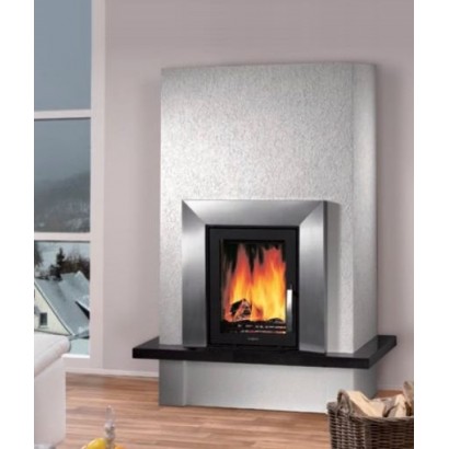 Простой прямоугольный корпус камина украшен черным гранитом и небольшой столешницей. Окно топочной дверцы — прямое и выполнено из стеклокерамики, с температурным порогом в 800 градусов Цельсия. Конвекционный короб — белого цвета. тепловая эффективность достигает 80%. Камин ABX Puris — хороший вариант для отопления загородного дома, дачи или городской квартиры. Особенно рекомендован для современных интерьеров.