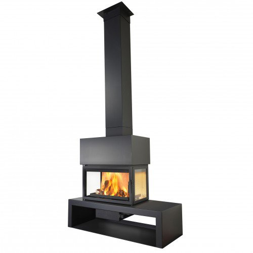 Пристенный камин с трехсторонним остеклением. Камин имеет боковую банкетку слева/справа. Корпус выполнен из стали с финишным покрытием черного цвета. Представленный камин отличается небольшими и компактными размерами, что позволяет устанавливать даже в небольших помещениях. Камин оборудован топкой, работающей на дровах. В топке реализованы система "чистое стекло" и функция вторичного дожига. Такой камин не только обогреет Ваше жилище, но и создаст в доме особую теплую атмосферу.