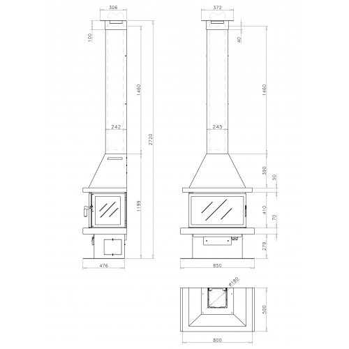 Модельный ряд каминных топок LL Calor отличается многообразием размеров и методом открытия дверцы (гильятина и боковое). Возможен забор воздуха с улицы.
