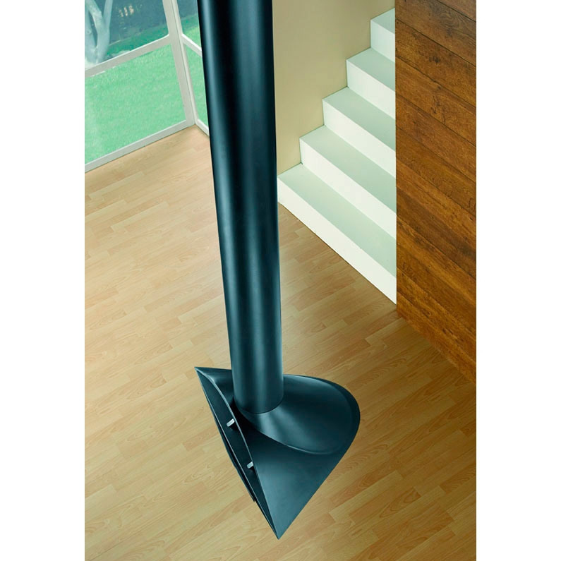 Центральный металлический подвесной камин, колосник и зольник. Высота 2,6 м, диаметр дымохода 20 см.