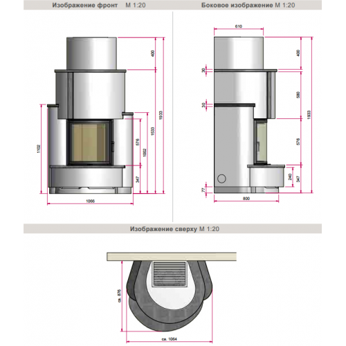 Диаметр дымохода O 180 мм.