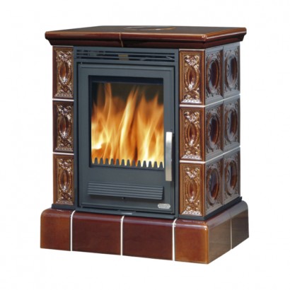 Вставка данной печи комбинированная, выполнена из чугуна и стали. Цветовую гамму кафеля можно подобрать на Ваш вкус: зеленый либо коричневый. Цоколь печи кафельный.