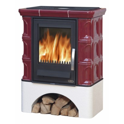 Кафельная печь Iberia L - вставка чугунная белый цоколь бордо