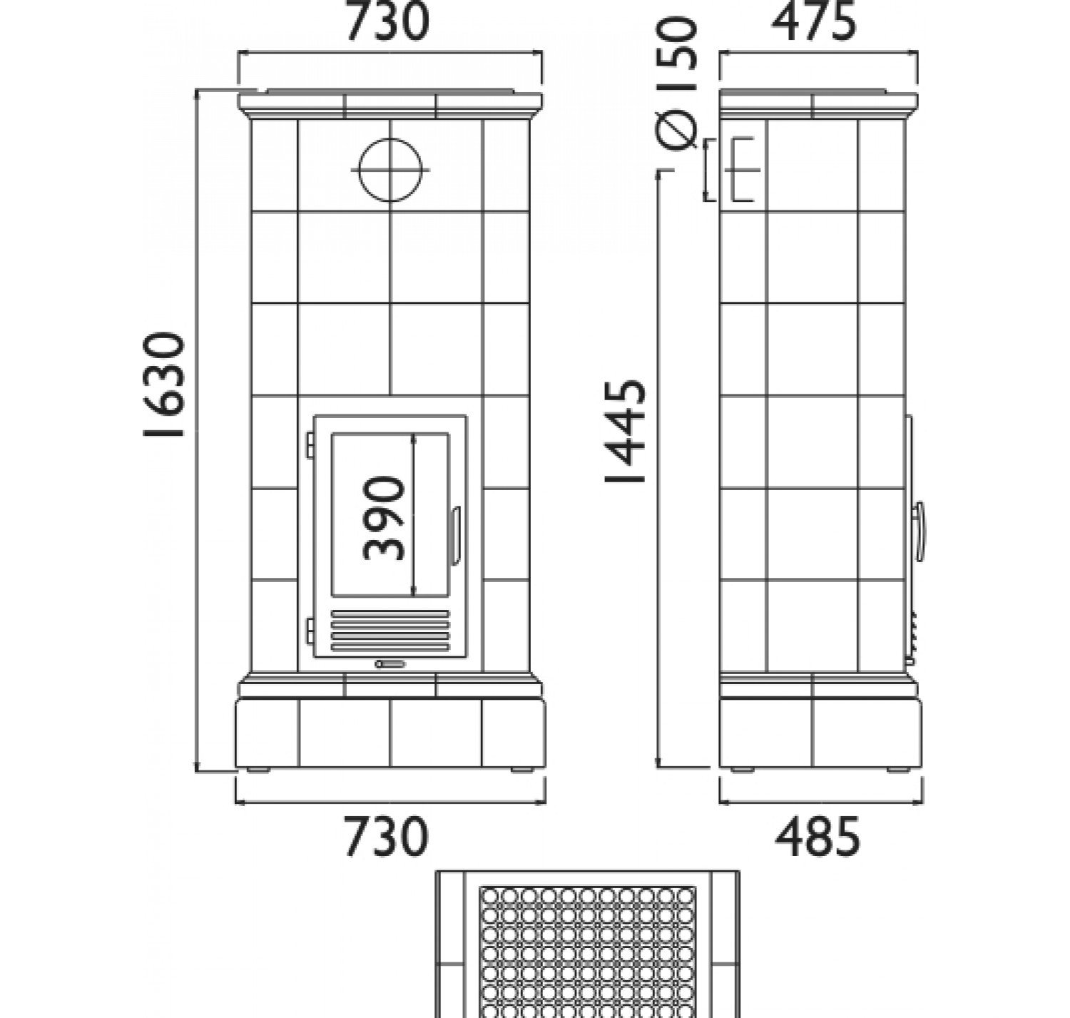 Топка выполнена из стали высокого качества с футеровкой вермикулитом либо из чугуна. Увеличенная площадь кафельной печи будет долго отдавать тепло.