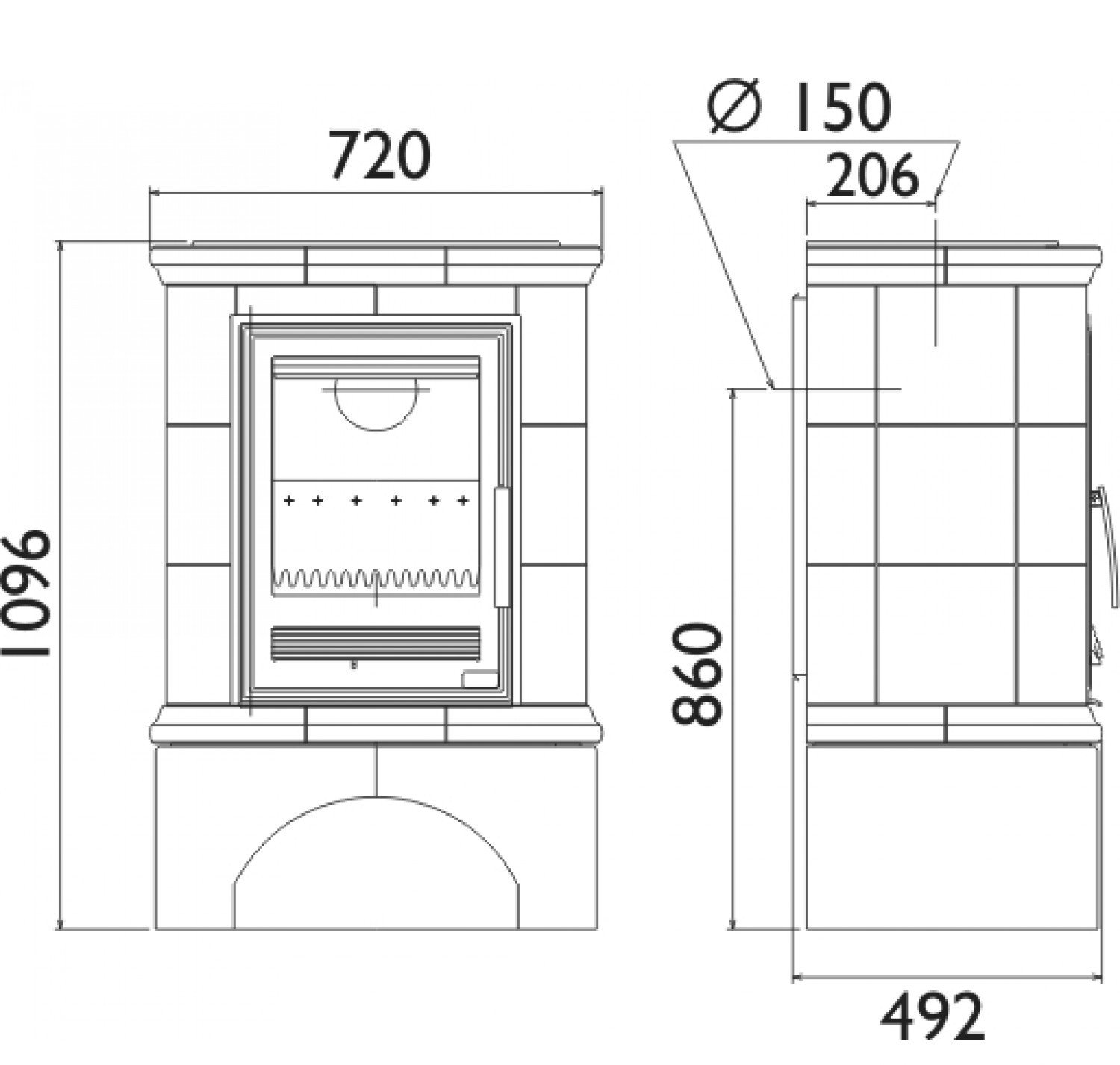 Печь выполнена в классическом стиле, её КПД составляет 78%. Комбинированная топка с лёгкостью обогреет помещение объемом до 90 кв.м. Специальный печной кафель из которого выполнена облицовка, долго сохраняет тепло, выдерживает резкий перепад температур, долговечен, не подвержен старению и легко моется. Так же эта печь-камин имеет целый ряд дополнительных опций (таких как, «система чистое стекло», дополнительный приток воздуха, вторичный дожиг), которые повышают её КПД.