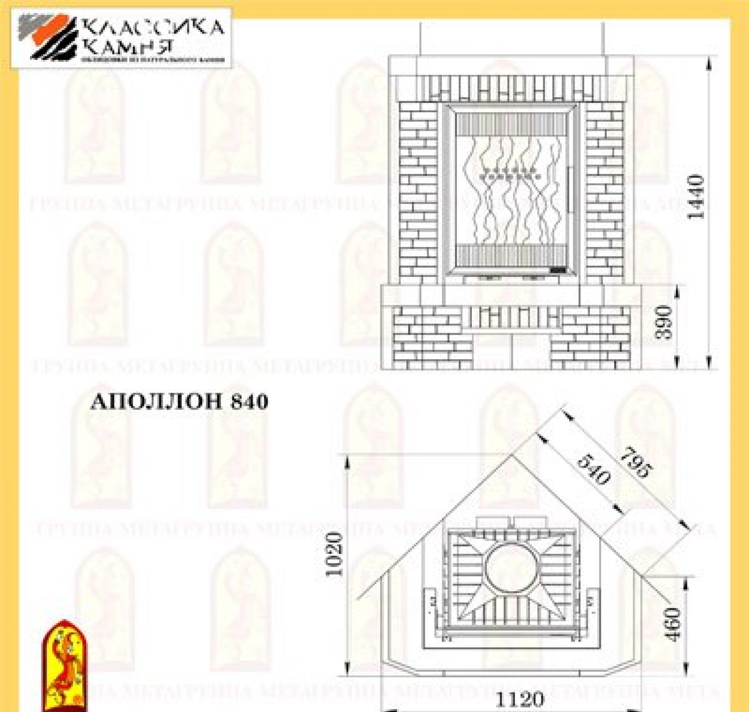 Благодаря своему небольшому весу, облицовка Мета АПОЛЛОН 840 не требует фундамента и станет главным украшением интерьера Вашего загородного дома или дачи.