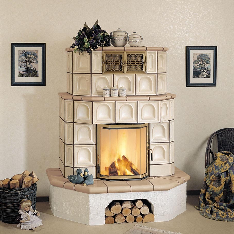 Пристенный камин из изразцов цвета jade (256) + sand (110).