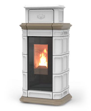 - Дизайнерская отъезжающая стеклянная крышка пеллетного бункера c элементами из керамики ручной работы (майолика)