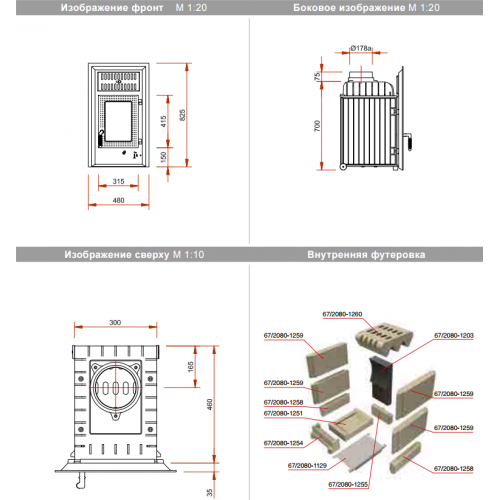 Размеры камеры горения: ширина 20.5 см, высота 45 см, глубина 35 см.