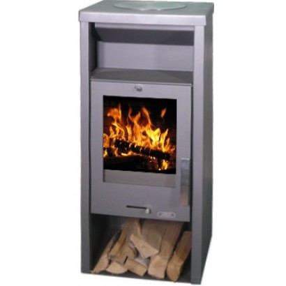Кроме того, печь укомплектована конфоркой для приготовления пищи. Таким образом, стальная печь Falun объединяет в себе варочные и отопительные функции. Топочная камера приподнята, организуя небольшое прямоугольное пространство для хранения дров. В надтопочной зоне расположена ниша для подогрева пищи и приготовления чая и кофе.
