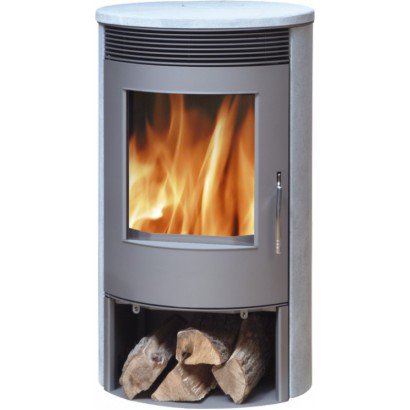 Корпус данной печи цилиндрической формы, поэтому она может стоять в углу или быть просто у стены. В качестве материала изготовления камина использовалась листовая сталь. Облицовка может быть из природного камня талькохлорита либо из песчаника.