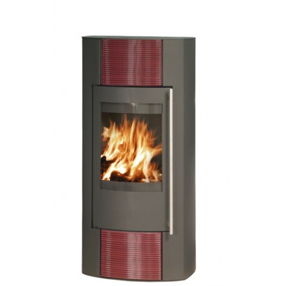 Печь-камин Turku АКВА кафель бордо, с теплообменником