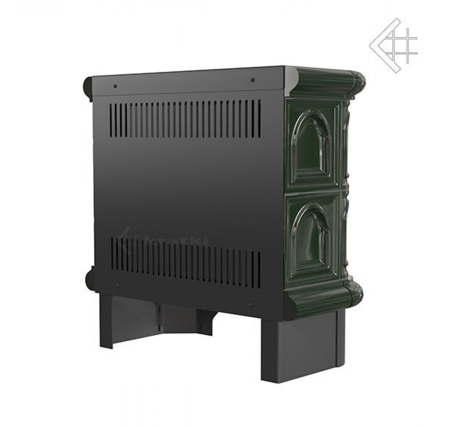 Печь Kratki WK440 снаружи декорирована керамической отделкой (изразцами). Изразцы пролиты термостойким раствором, который позволяет после того как в камине прогорели дрова поддерживать тепло.